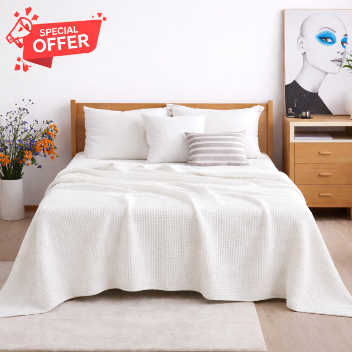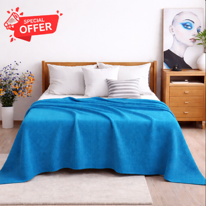 The Blanket features a classic thermal weave and double-needle stitched self-hem. This 100% cotton breathable blanket is perfect, whether you're looking to add a layer of warmth or just the right decorative accent. Cotton Weave Construction To Keep Your Cool During Summers