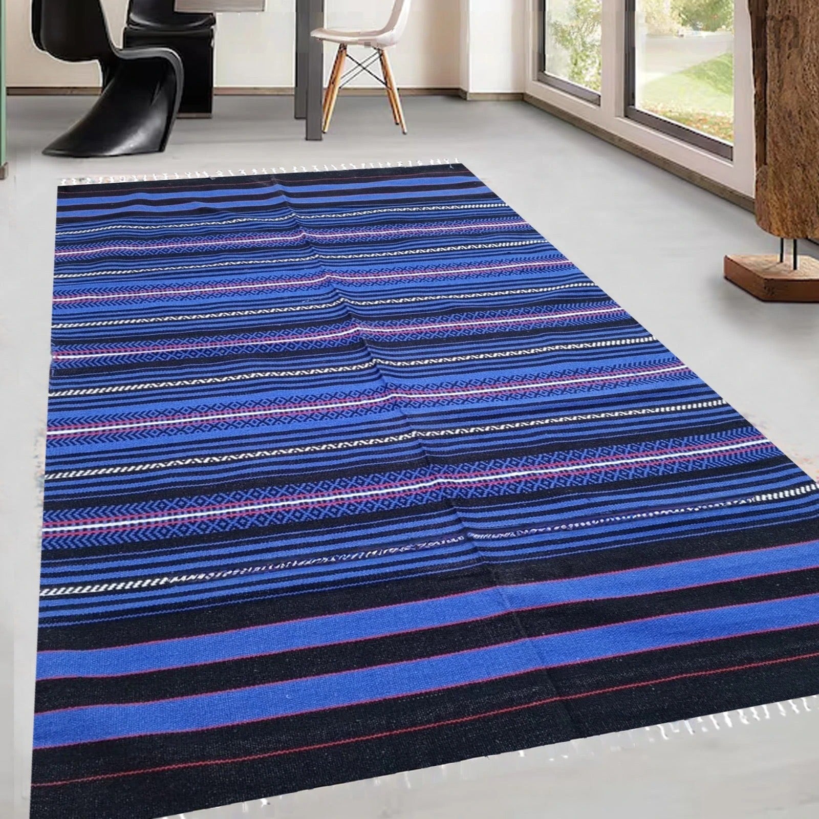 Handwoven kilim by the skilled artisans, these floor double sided kilims provide a rich cultural embellishment to your living rooms.