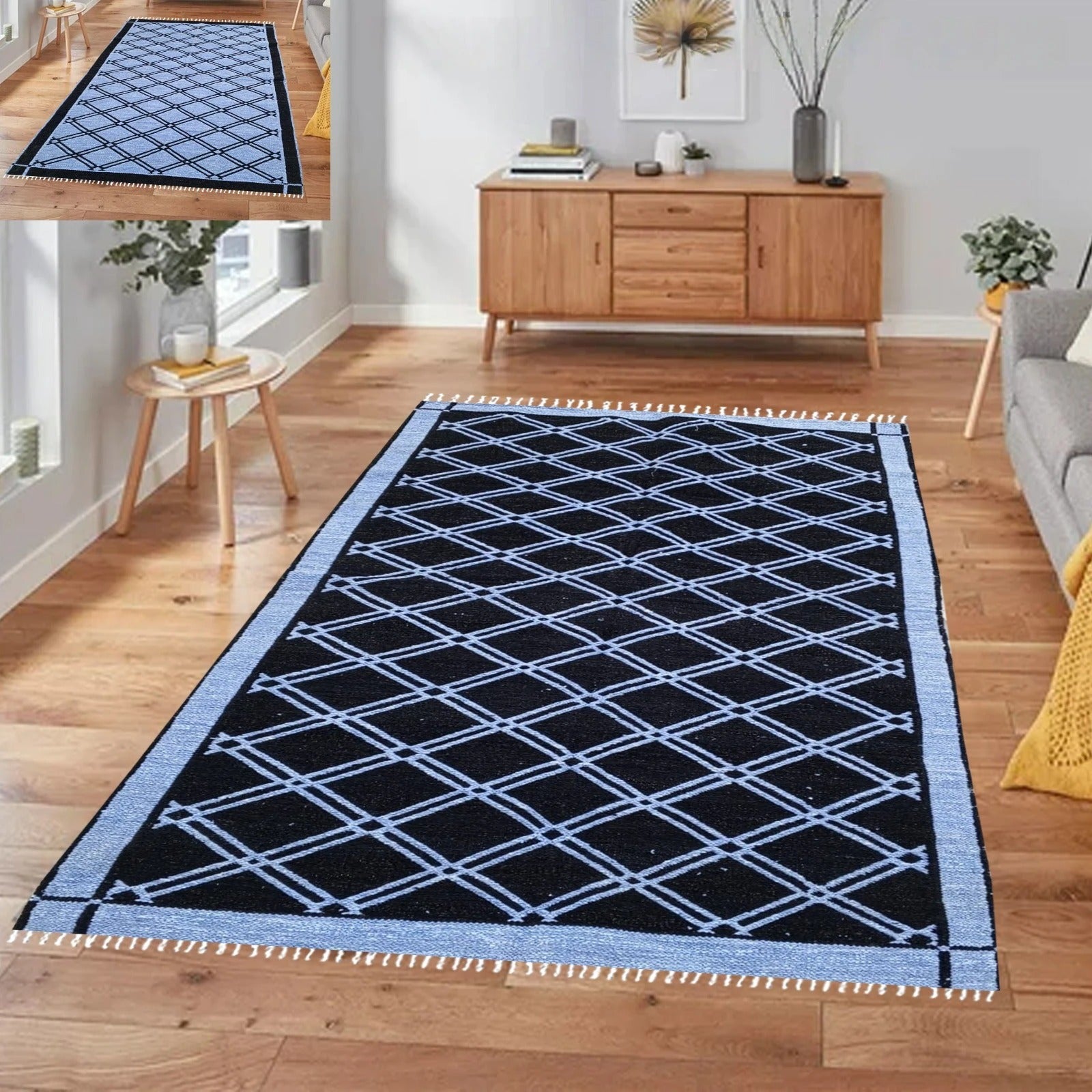 Rhombus Style Rug - Black & Sky Blue (4 ft' x 6 ft')