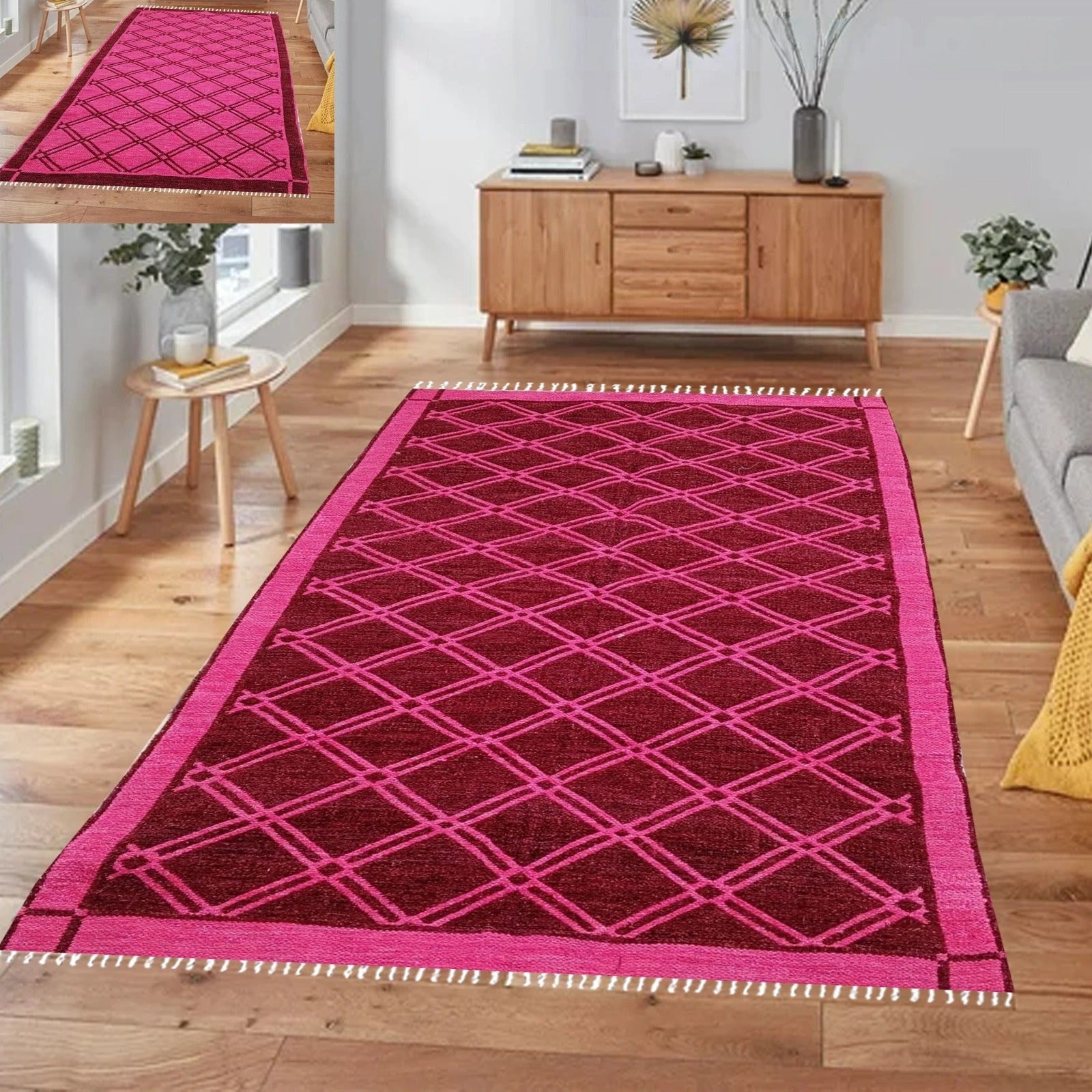 Rhombus Style Rug - S.Pink & Maroon (4 ft' x 6 ft')