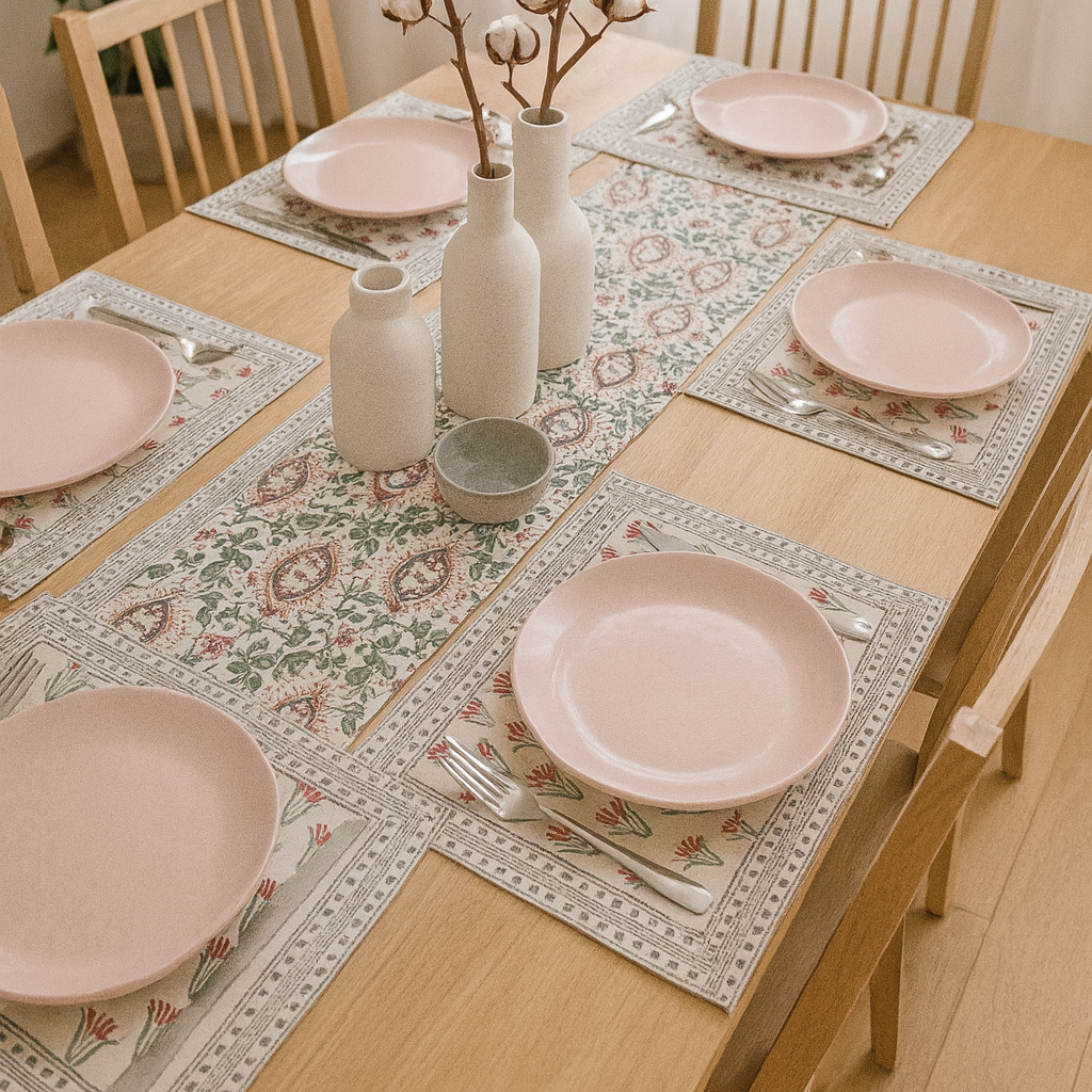 Add a touch of country charm to your table with this Rustic Burlap Table Runner With Mats. Crafted from natural burlap fabric in a rich, deep hue, this table runner is perfect for creating a cozy and inviting atmosphere.