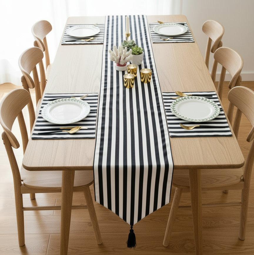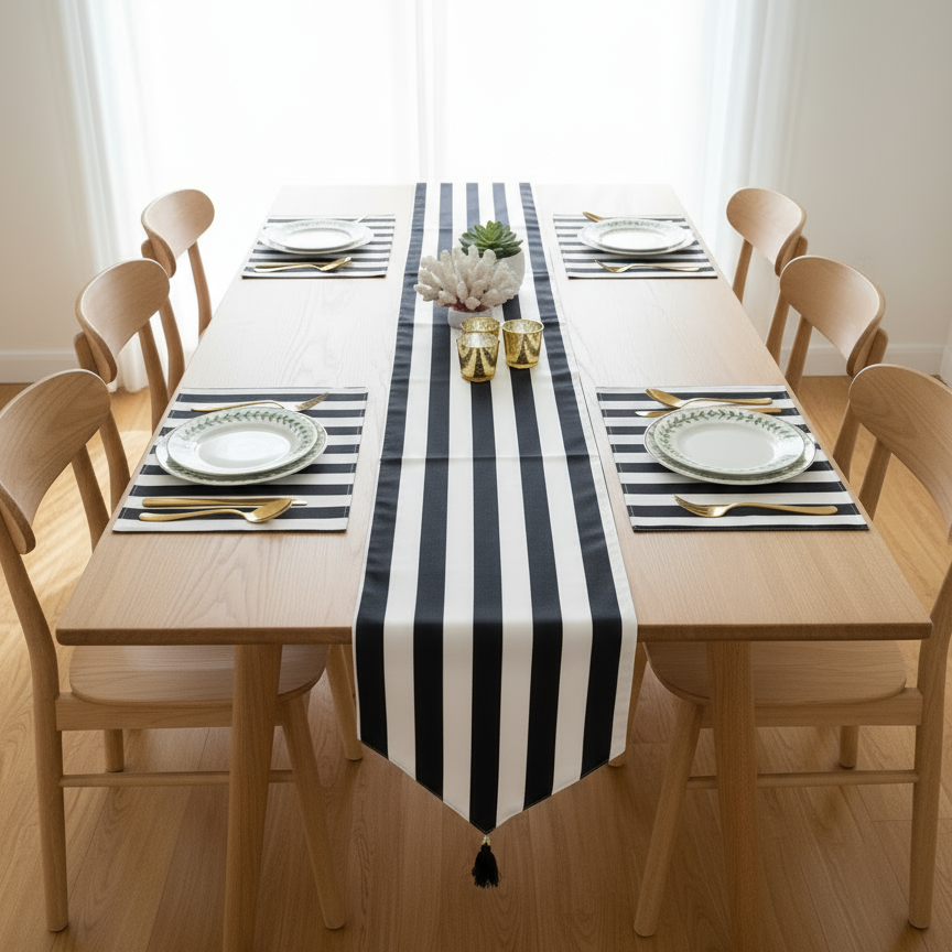 Add a touch of country charm to your table with thisParallel Grace Table Runner with Mats. Crafted from natural burlap fabric in a rich, deep hue, this table runner is perfect for creating a cozy and inviting atmosphere.